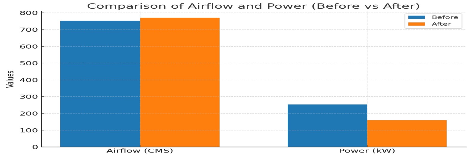 in airflow and a significant reduction in power consumption.